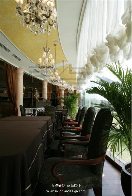 西山美廬會所,多種款式高低搭配的美式皮制釘扣沙發(fā),給人們帶來一個舒適的放松空間,大氣的宴會西餐廳與之相對,精致的水晶燈顯現(xiàn)出皇家高雅氣質(zhì),整個空間如氣勢磅礴的交響樂般讓人流連。